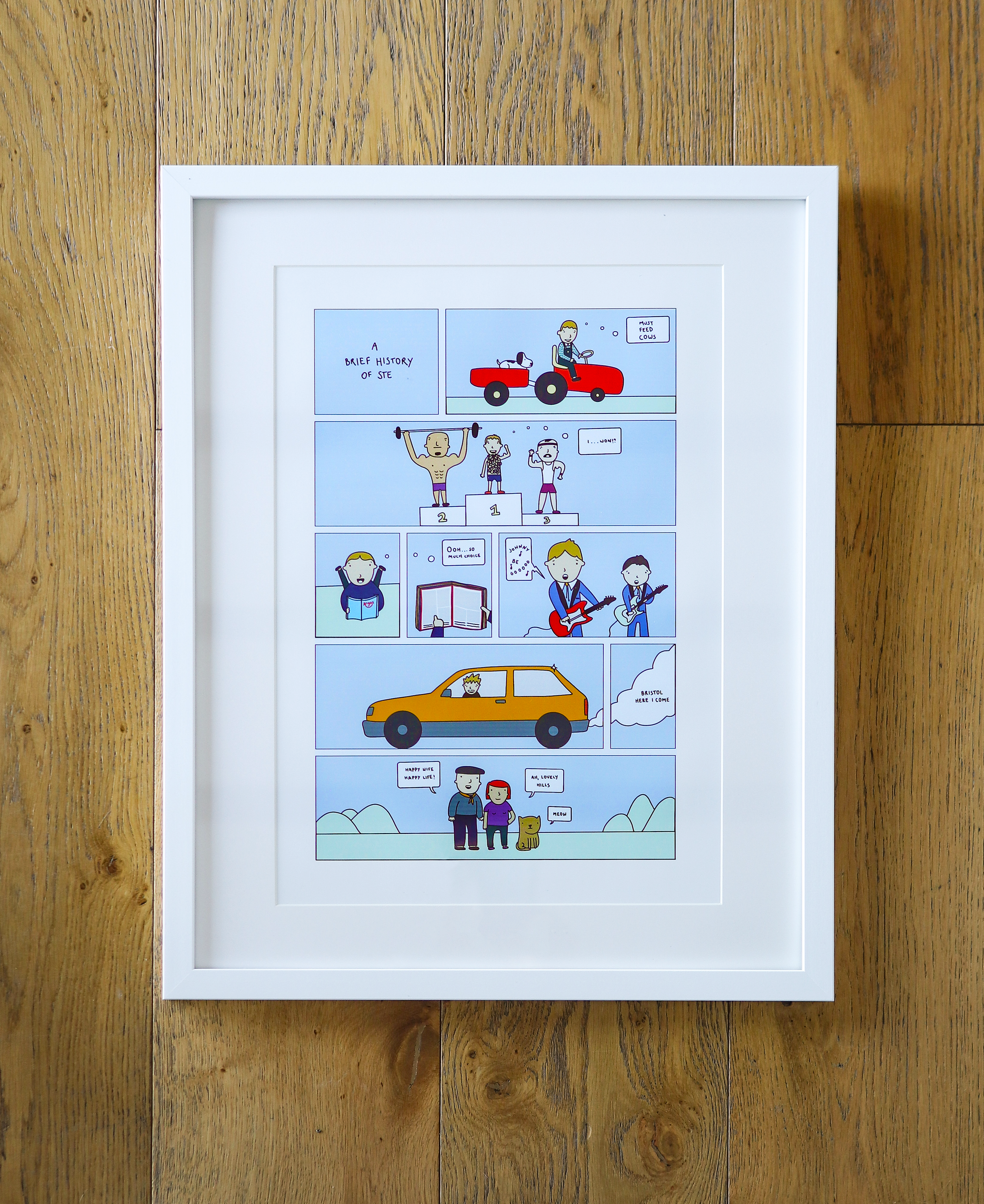 For a recent cartoon commission, I was asked to create an artwork for a 40th birthday present. It depicts special and memorable moments throughout the clients lifetime, in the style of his favourite illustrator - Reza Farazmand, otherwise know as poorly drawn lines - @poorlydrawnlines.